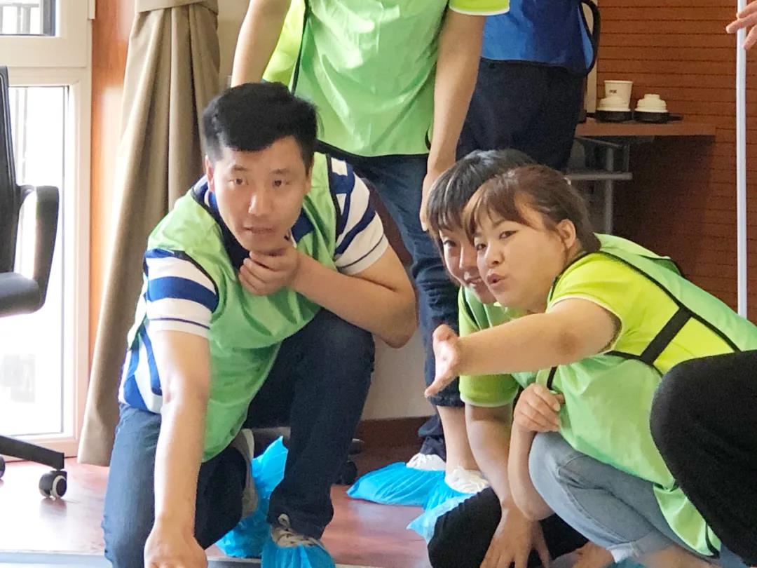 “鼓舞飛揚”也是我們上午的趣味項目之一,每個隊員手拿一根連接著鼓的繩索,所有人共同拉繩將鼓上的球顛起來,以顛起來的球擊鼓次數(shù)多的小組為勝。全體學(xué)員取長補短、團結(jié)協(xié)作完成共同目標,充分感受互相鼓勵對完成任務(wù)的積極作用。
