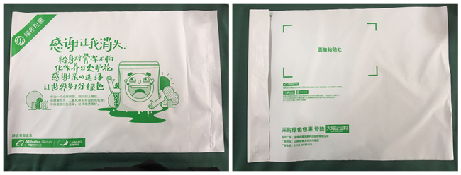 圖3:金暉兆隆生產(chǎn)的供應(yīng)阿里菜鳥(niǎo)物流的生物降解快遞袋