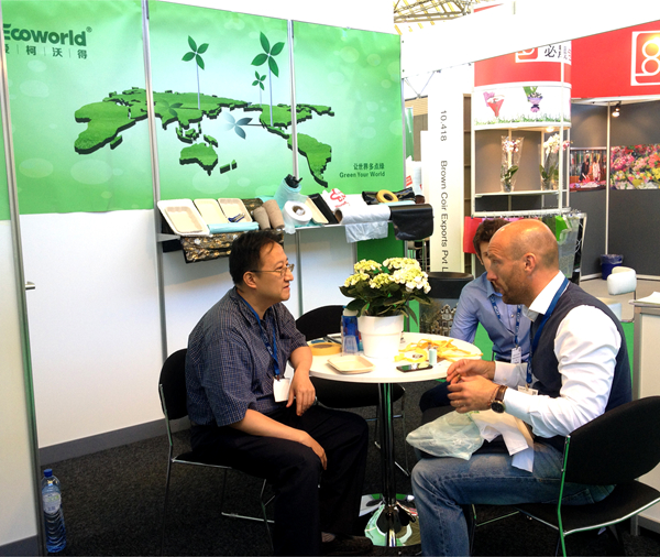 金暉兆隆在此次展會中,以清新綠色環(huán)保為主題的展位為展館添加了不可多得的一抹綠色。展會中不僅有花卉周邊的展示,更有園藝用品,及園藝包裝,托盤和花盆,生物基類的生產(chǎn)和相關(guān)產(chǎn)品的展示。