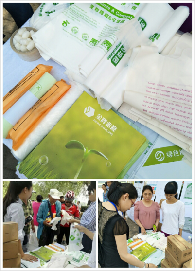 參與此次活動(dòng)的,除環(huán)保組織、相關(guān)政府部門、投身環(huán)保事業(yè)的仁人志士,還包括一些社會(huì)企業(yè)。作為生物降解材料PBAT的生產(chǎn)供應(yīng)商,金暉兆隆受邀參與展覽,現(xiàn)場以成品展示,互動(dòng)科普的形式,向公眾介紹生物降解塑料如何有效減少“白色污染”,保護(hù)生態(tài)環(huán)境。
