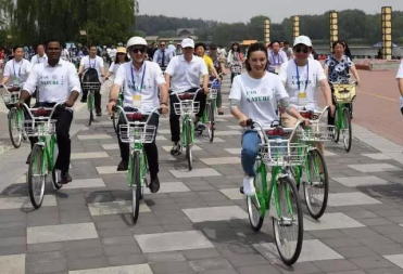 環(huán)境署可持續(xù)消費(fèi)項(xiàng)目倡導(dǎo)者宋佳帶領(lǐng)的“綠色騎行”隊(duì)