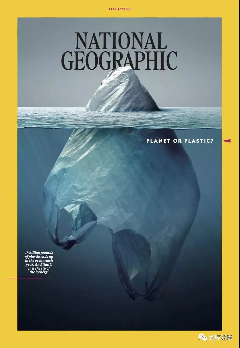 《國家地理》雜志一位高級圖編在推特上發(fā)布了6月刊的封面圖,網友們好評如潮。它巧妙地用塑料袋替代漂浮的冰山,左下方的文字寫道:每年有180億磅(約816萬噸)塑料涌入海洋,而那只是冰山一角。這張封面的確美感十足,但寓意也和色調一樣冷冰冰且含蓄,這就應了右邊的字:要地球,還是塑料?